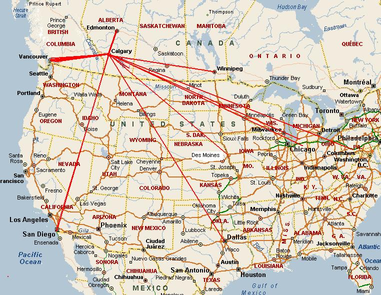 This map shows you the spots from around North America that Firehawks will be coming to Calgary from. If you see another owner that looks like they might be passing your way, drop me an email and I will try and hook you up. (maplehawk@shaw.ca)
